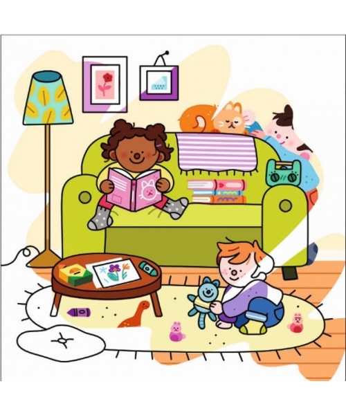 C'est magique ! Il suffit de remplir le pinceau avec de l'eau, puis de le passer sur les 6 décors du carnet et d'observer les différents moments de la journée apparaître : le petit-déjeuner, le marché et ses stands, la sortie au parc, le temps de jeu, l'heure du bain et le moment du coucher.