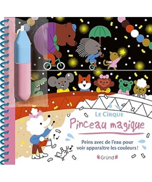 C'est magique ! Il suffit de remplir son pinceau avec de l'eau, puis de le passer sur les 6 décors du carnet pour voir apparaître les magnifiques scènes : le chapiteau, le début du spectacle, les clowns, les magiciens, les funambules et les acrobates ! Attends un peu : les décors disparaissent quand les pages sèchent pour pouvoir recommencer à l'infini !