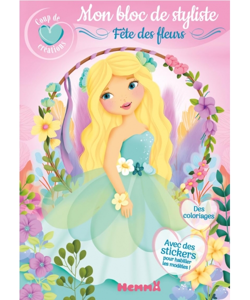 Un format bloc de 64 pages pour colorier les princesses et imaginer les plus jolies tenues pour la fête des fleurs avec 16 planches de stickers !