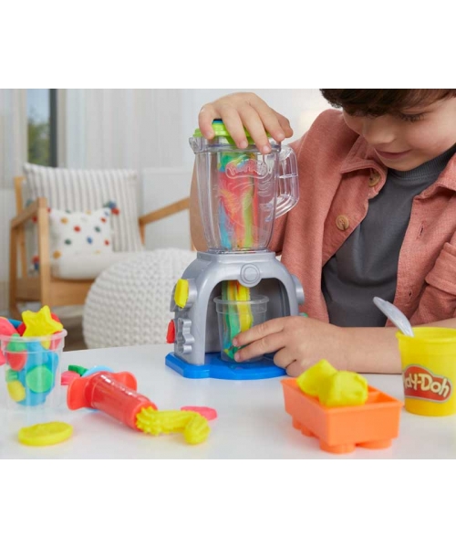 Whirl into imaginative play with the Play-Doh Swirlin' Smoothies Blender Playset! This food playset for children lets boys and girls aged 3 and up create Play-Doh fruits and vegetables, pop them into the blender, and press them through to swirl them into super-colourful pretend smoothie creations! And when it comes to decorating, the only limit is children's imaginations! Pink Play-Doh whipped cream? Why not? Pretend yellow strawberries? Of course! Make-believe blue broccoli? Go for it! Play-Doh sets like the Swirlin' Smoothies Blender Playset make great creative toys for 3-year-old girls and boys and up. Hasbro, Play-Doh and all related properties are trademarks of Hasbro.