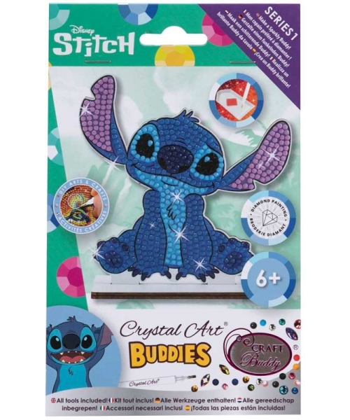 Create the most lovable Alien with the 'Stitch' Disney Collectable nIntroducing 'Stitch' - one of many highly sought after Disney Crystal Art Buddies from our brand new Series 1 collection!nnMinimum order x 5nnProduct Contents:n1 x Wooden Crystal Art Buddy with adhesive templaten1 x Wooden Display Standn1 x Crystal pick up penn1 x Trayn1 x WaxnBags of crystals & Ziplock bagsnProduct Dimensions:n11 x 8cmnAge Range:nAges 6+