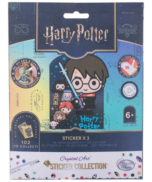 Each sticker pack includes 3 x Crystal Art® stickers featuring randomly assorted Harry Potter characters. There are 102 stickers to collect in total, and each sticker has a particular location within our Harry Potter Crystal Art® Sticker Album. Look on the back of the sticker to find where it should be placed.