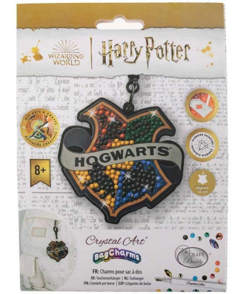 Carry A Sparkling Charm Of Hogwarts Wherever You GonIntroducing the new "Hogwarts Badge" Crystal Art Bag Charm Kits, the ultimate emblem of the wizarding world for your bag. Display the storied Hogwarts crest in a blaze of colour and crystals, and let the world know your love to Harry Potter and the magical world! Each Crystal Art Bag Charms kit comes with everything you need to complete the project. It's super fun and relaxing to make this sparkling bag charms that comes with a clip-on hanger so you easily put on any backpacks, handbags, luggage's, laptop pouches and etc!nnMinimum order x 5nnProduct Content: n1 x Crystal Art Bag Charms with adhesive templaten1 x Pick up penn1 x Trayn1 x Waxn1 x Clip-on hangern1 x Sticker for personalisationnBags of crystalsnZiplock bagsnProduct Dimension:nThis product is 9cm x 11cm in size. nAge Range: nSuitable for adults and children aged 8 and over, accompanied by an adult.