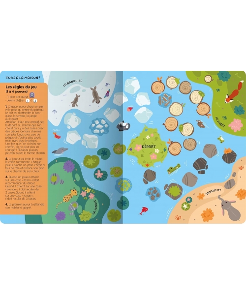 Les ani'doux te présentent leur grand livre avec 5 jeux amusants ! Les pions sont intégrés dans la couverture et te permettront de jouer partout !