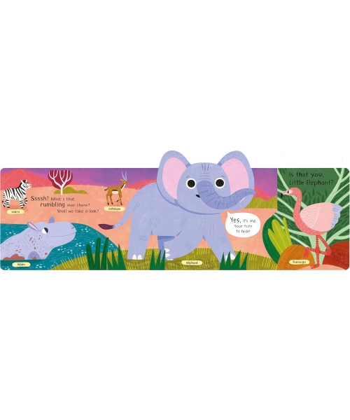 A clever hide-and-seek lift the flap book about an elephant with a pop-up ending.