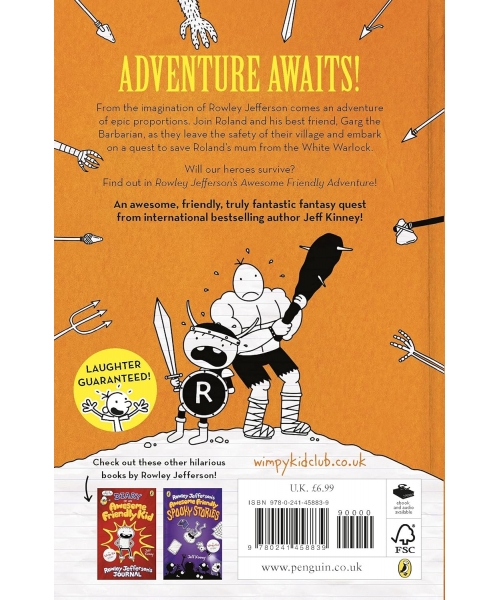 From the imagination of Wimpy Kid's Rowley Jefferson comes an adventure of epic proportions! Join Roland and his best friend, Garg the Barbarian, as they leave the safety of their village and embark on a quest to save Roland's mum from the White Warlock. Will our heroes survive? Find out in Rowley Jefferson's Awesome Friendly Adventure!