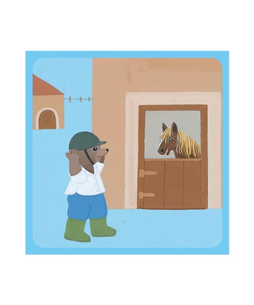 Petit Ours Brun est bien sur son poney, il est fier d'être un grand cavalier.