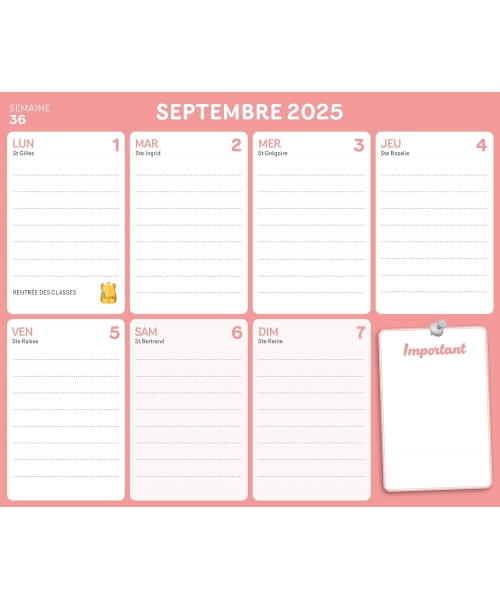 Planifiez tout de septembre 2025 à décembre 2026 (16 mois) avec ce calendrier maxi-aimanté. Grâce à ses grandes cases hyper pratiques, le planning d'organisation par semaine permet de tout noter et de ne rien rater de la vie familiale.