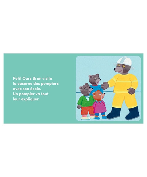 Petit Ours Brun visite une caserne de pompiers. Il monte dans le camion et porte un vrai casque. Être pompier, quelle aventure !