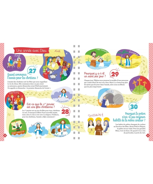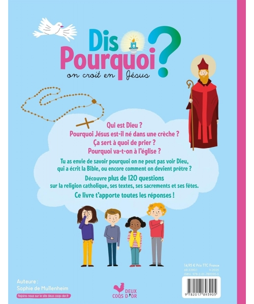 Qui est Dieu ? Pourquoi Jésus est-il né dans une crèche ? Ça sert à quoi de prier ? Pourquoi va-t-on à l'église ? Tu as envie de savoir pourquoi on ne peut pas voir Dieu, qui a écrit la Bible, ou encore comment on devient prêtre ? Découvre plus de 120 questions sur la religion catholique, ses textes, ses sacrements et ses fêtes. Ce livre t'apporte toutes les réponses !