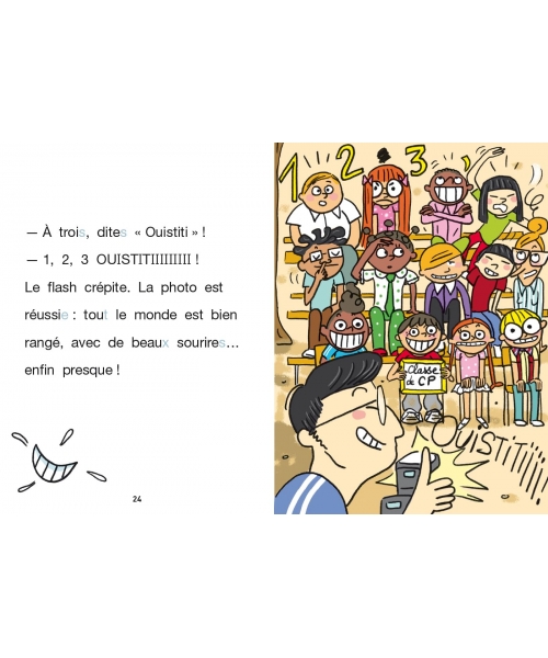 Mais que se passe-t-il à l’école aujourd’hui ? Les enfants ont revêtu leurs plus vêtements. Julie a même mis sa robe à paillettes. Bien sûr, c’est le jour de la photo de classe ! Et Sami ? Il l’a complètement oublié !