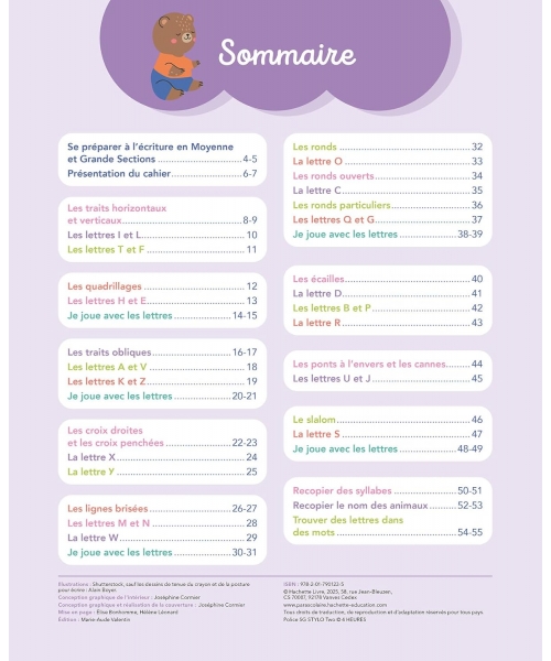 EN PLUS ! Un joli cahier détachable au centre de l‘ouvrage pour réinvestir les apprentissages dans des tableaux thématiques.