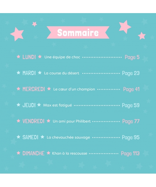 Contient les histoires : Aurore, Une équipe de choc - Jasmine, La course du désert - Cendrillon, Le cœur d’un champion - Raiponce, Max est fatigué - Belle, Un ami pour Philibert - Merida, La chevauchée sauvage - Mulan, Khan à la rescousse.