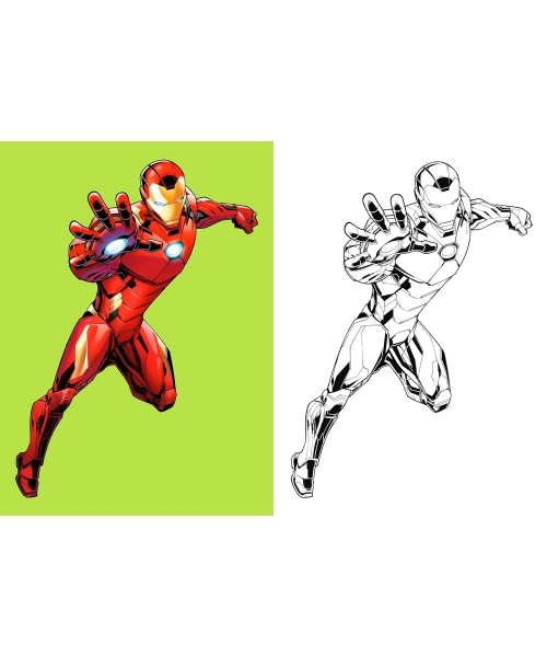 – De grandes illustrations avec modèles pour colorier Iron Man, Thor, Spider-Man et plein d’autres personnages selon ses envies !