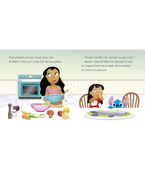 L’histoire : Lilo n’aime que les pâtes. Et si Nani faisait plutôt découvrir les fruits et légumes à Stitch ? Le petit monstre aime tout… et il serait bien capable de donner envie à son amie de goûter aussi !