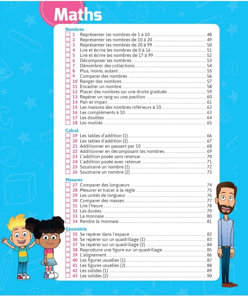 Ce cahier d’entrainement permet de réviser le programme de CP en français et en maths et de progresser.
