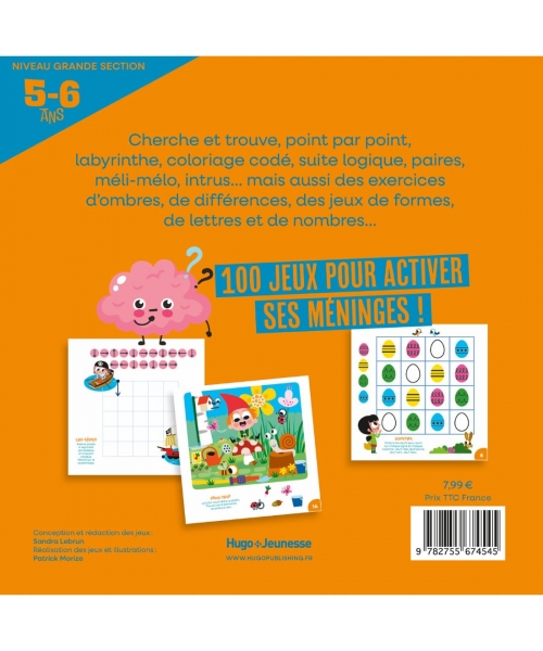 Cherche et trouve, point par point, labyrinthe, coloriage codé, suite logique, paires, méli-mélo, intrus… mais aussi des exercices d’ombres, de différences, des jeux de formes, de lettres et de nombres…