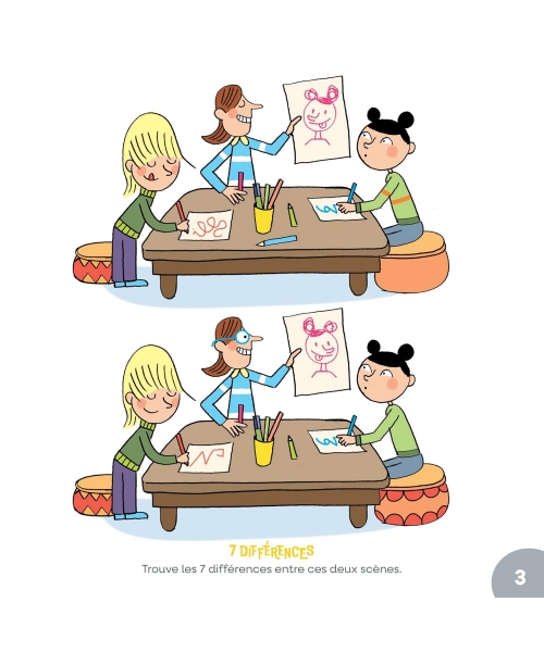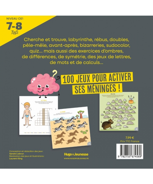Cherche et trouve, labyrinthe, rébus, doubles, pêle-mêle, avant-après, bizarreries, sudocolor, quiz… mais aussi des exercices d’ombres, de différences, de symétrie, des jeux de lettres, de mots et de calculs…
