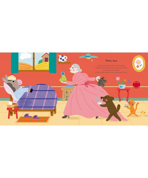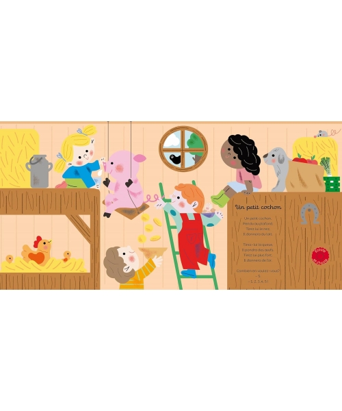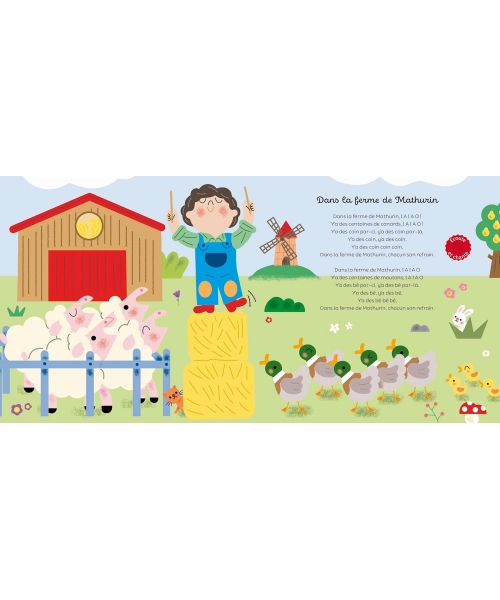 Sur chaque double-page, l’enfant découvre une célèbre comptine, illustrée par une grande image. Chaque texte de chant est accompagné d’une puce-son, signalée par une rondelle rouge « Écoute et chante » très visible, même par les plus petits.