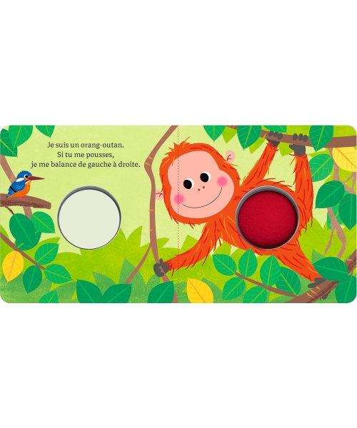 Les animaux de ce livre sont adorables ! Orang-outan, colibri et serpent : ils sont tout doux et vivent tous dans la jungle. Et regarde, tu peux même les caresser ! Avec ce petit livre interactif, votre enfant découvre le monde des animaux de la jungle.