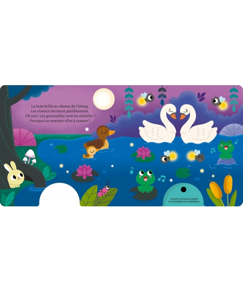 Un jolie histoire avec des textes qui riment. Les petits s'amuseront à allumer et à éteindre les lumières du livre en soufflant sur le capteur.