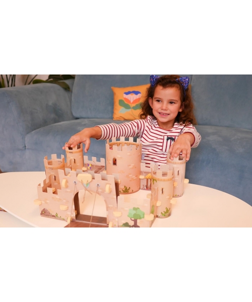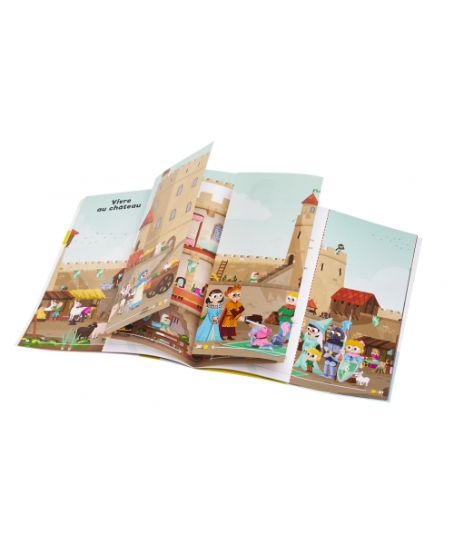 L'enfant fabrique son château fort et peut le transformer à volonté en déplaçant les remparts et les tours. Il fabrique un pont levis et son château se transforme en terrain de jeu ! Il s'amuse dans un jeu de cherche et trouve pour recoller des autocollants à l'intérieur de son château.