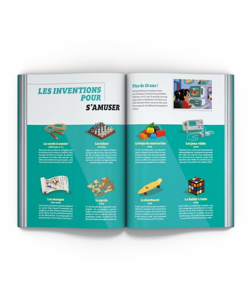 En parcourant chaque thème, richement illustré et détaillé grâce à des photographies, des encadrés et des chiffres clés, découvre l’histoire passionnante de 30 inventions qui ont transformé le monde !