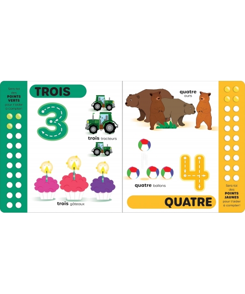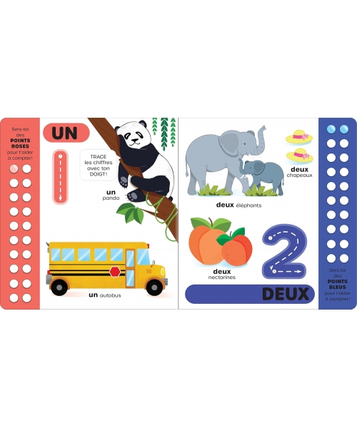 Avec ses chiffres en formes creuses, les enfants s'entraîneront à écrire en suivant des modèles fléchés pour guider le mouvement de leurs doigts. Les chiffres sont aussi intégrés dans des scènes vivantes et détaillées qui leur permettront d'enrichir leur vocabulaire tout en s'initiant de manière amusante à compter par la même occasion.