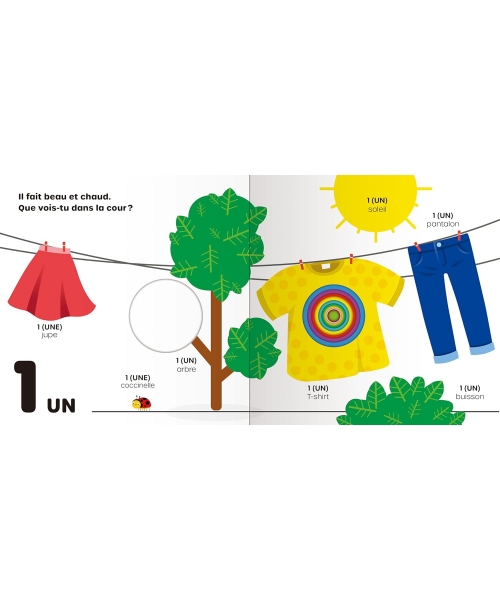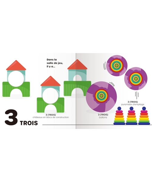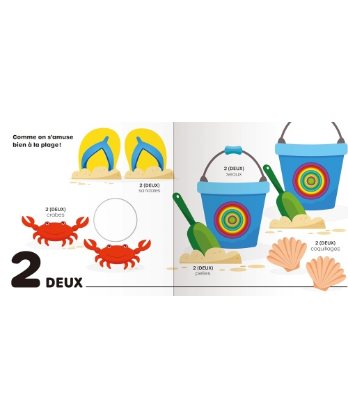Ce livre aux illustrations vivement colorées encourage les enfants à apprendre les nombres de 1 à 10 et à compter, tout en enrichissant leur vocabulaire avec de nombreux mots mis en scène. Idéal pour les petits bambins curieux ! Le livre contient des formes découpées pour plus de plaisir interactif ; les trous rétrécissent au fil des pages, créant des couches intéressantes à explorer avec les doigts.