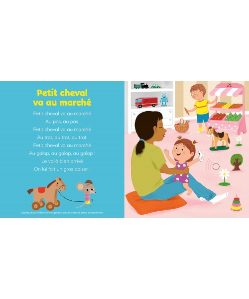 Avec ses puces sonores musicales, ce recueil est unique. Sur chaque page, l'enfant recherche dans l'illustration le petit bouton qui déclenchera la musique.