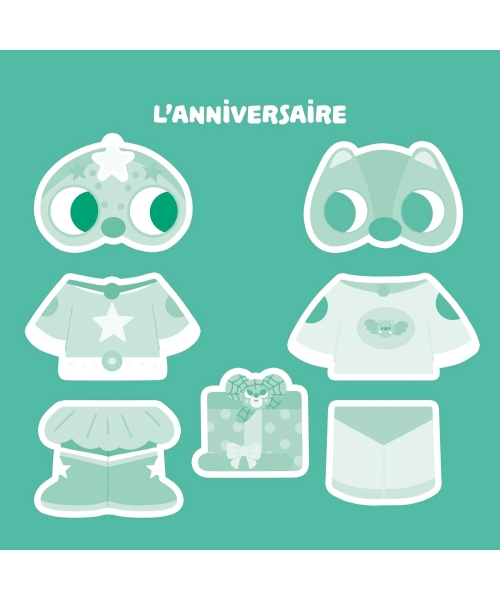 Cette pochette contient 25 stickers épais et repositionnables de vêtements pour déguiser 8 personnages sur 4 décors différents.