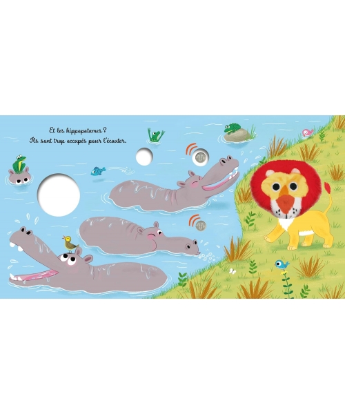 Un livre avec une marionnette de lion et 6 puces sonores !