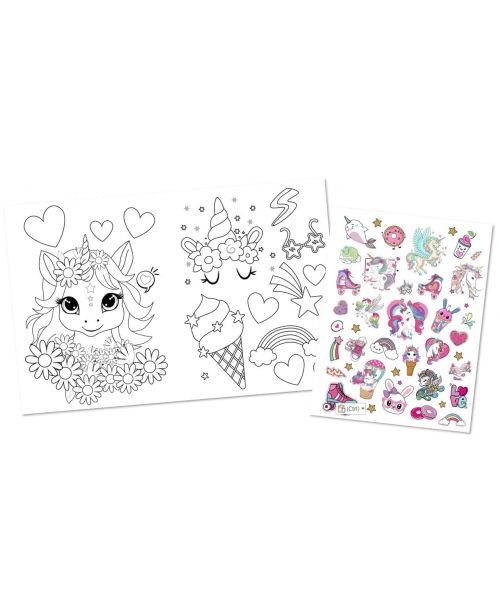 Un livre de coloriage dédié aux licornes avec, en bonus, deux planches de tattoos mettant en scène l'univers arc-en-ciel des licornes. Un livre de coloriage original de 32 pages dans l'univers des licornes. Des illustrations au look tatouage, fun et décalées. En bonus, deux planches de tattoos colorés à l'éfigie des licornes viennent compléter ce livre de coloriage.