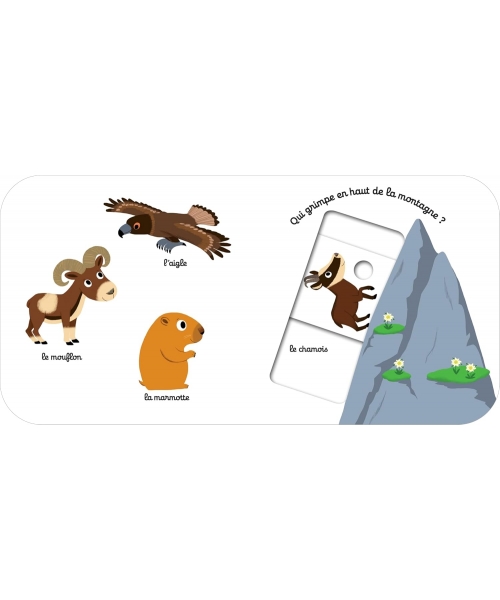 Un imagier avec 5 animations très solides conçues pour les petites mains afin de découvrir les mots de la montagne.