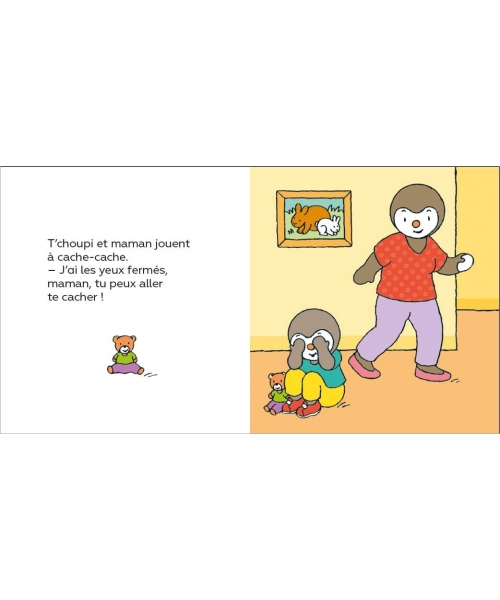 T'choupi joue à cache-cache avec maman et avec papa. Maman se cache, puis c'est au tour de T'choupi. Mais qui trouvera la meilleure cachette ?