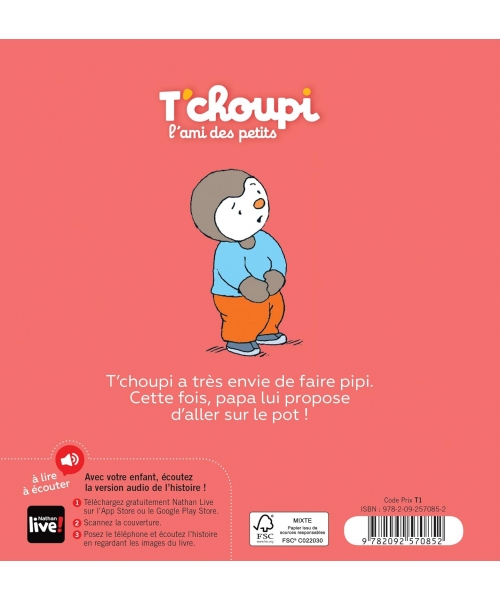 Dans cette histoire, T'choupi a très envie de faire pipi, et cette fois papa lui propose d'aller sur le pot... Une nouvelle étape pour lui !