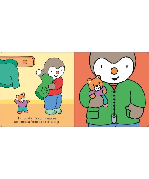 Un livre pour apprendre à s'habiller tout seul avec T'choupi ! Grâce à 7 animations, votre enfant va s'entraîner à :