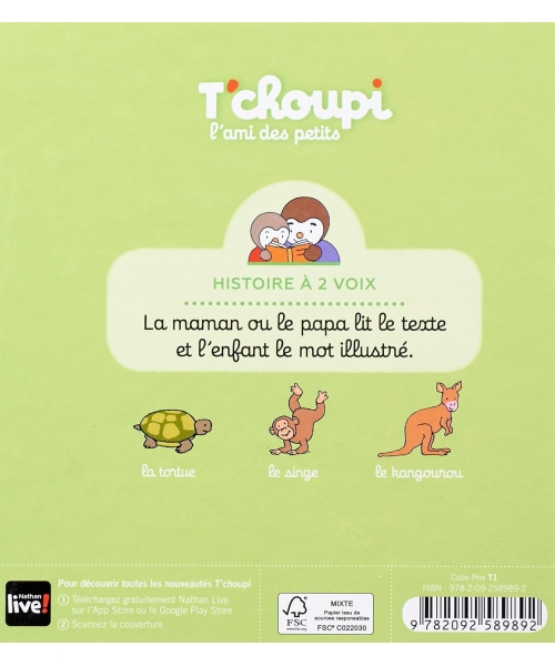 L'enfant découvre avec T'choupi l'univers et le vocabulaire du zoo.