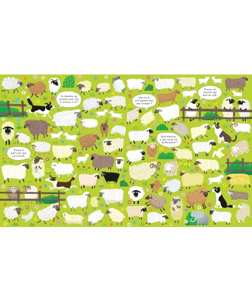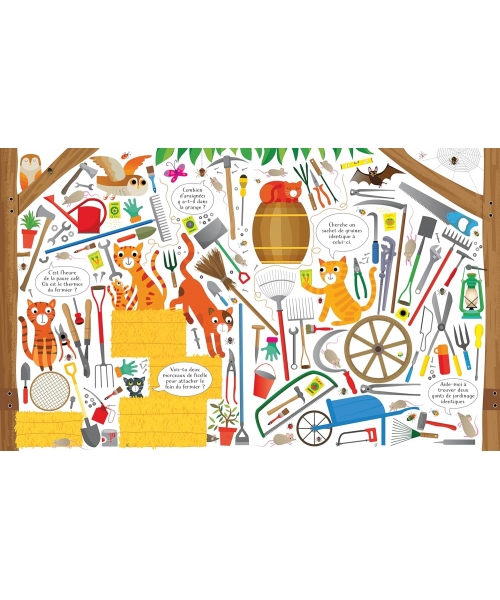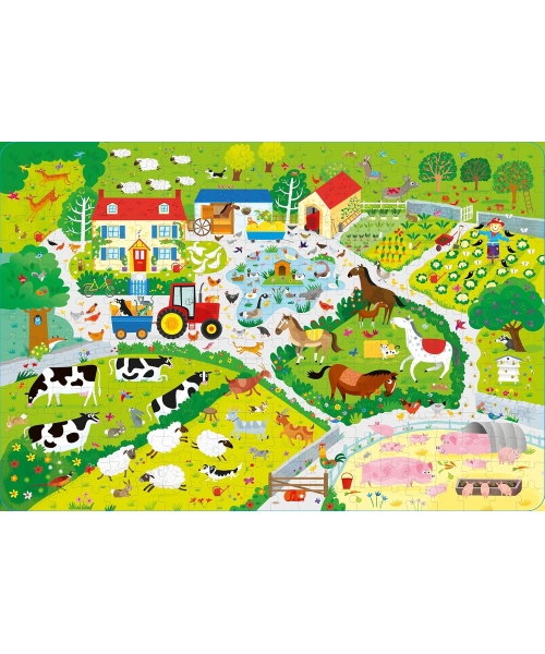 Un puzzle de 100 pièces représentant une ferme foisonnante, ainsi qu'un livre Cherche et trouve, proposés ensemble dans un beau coffret. À toi de repérer des cochons qui dansent, un mouton qui tricotte un pull, une oie qui a perdu sa botte, et bien d'autres animaux !