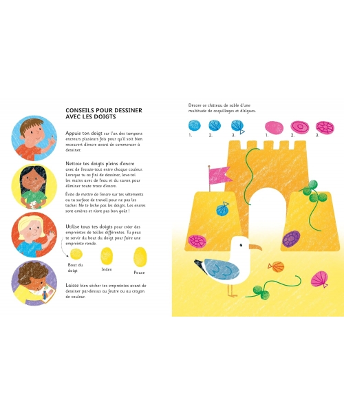 Un livre parfait pour l'été, pour dessiner et peindre avec les doigts à l'aide de la palette d'encres fournie.