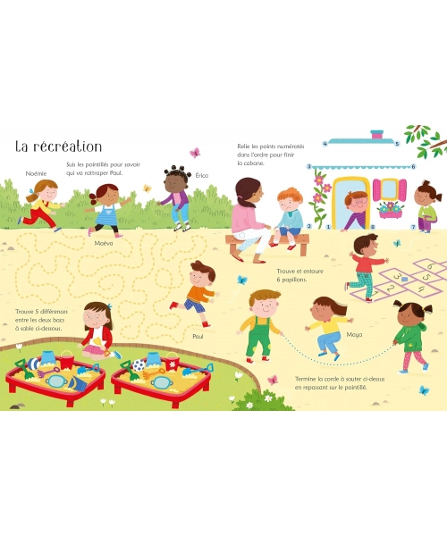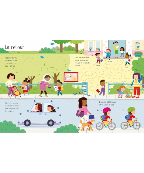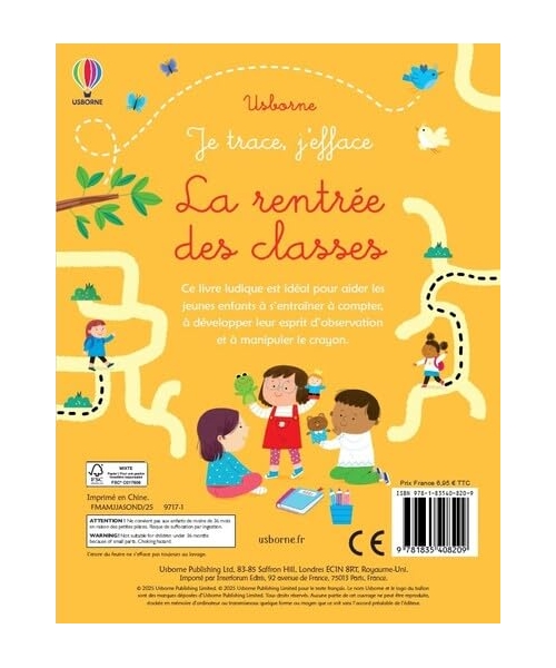 Les activités de ce cahier, toutes sur le thème de l'école et de la rentrée des classes, procureront aux enfants l'entraînement indispensable pour apprendre à manier le stylo et développer les compétences qui précèdent l'apprentissage de l'écriture. Parmi les nombreux jeux proposés, ils trouveront des labyrinthes, des jeux des différences, des points à relier et des lignes à tracer en suivant les pointillés. Le feutre fourni avec le cahier permet d'écrire et de dessiner facilement sur les pages nettoyables, avant de tout effacer et de recommencer.