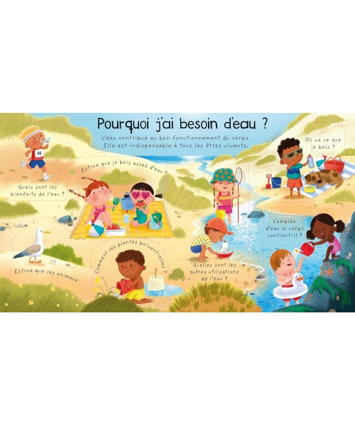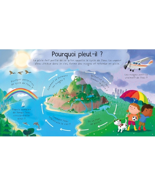 Ce livre documentaire à rabats encourage les enfants à être curieux du monde qui les entoure, et réponds à leurs questions sur le fascinant cycle de l'eau, en abordant la provenance de la pluie, les inondations et les sécheresses, l'importance de l'eau propre, et bien plus encore. Un livre écrit vec les conseils avisés de l'organisation non gouvernementale internationale Water Aid.