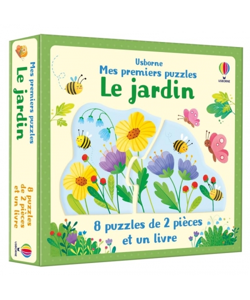 Huit puzzles de 2 pièces chacun accompagnent un livre sur le thème du jardin.