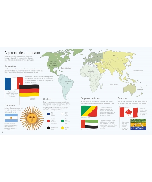 Un livre de coloriage rempli d'informations sur les drapeaux et les pays du monde.