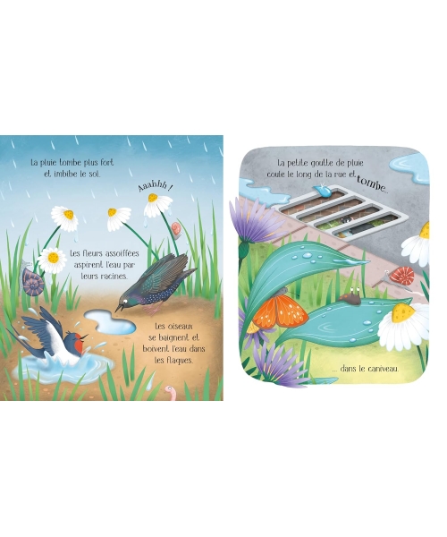 Au fil des pages de ce petit documentaire, les tout-petits vont suivre le parcours fascinant d'une goutte de pluie.