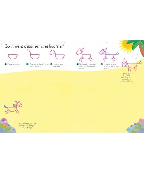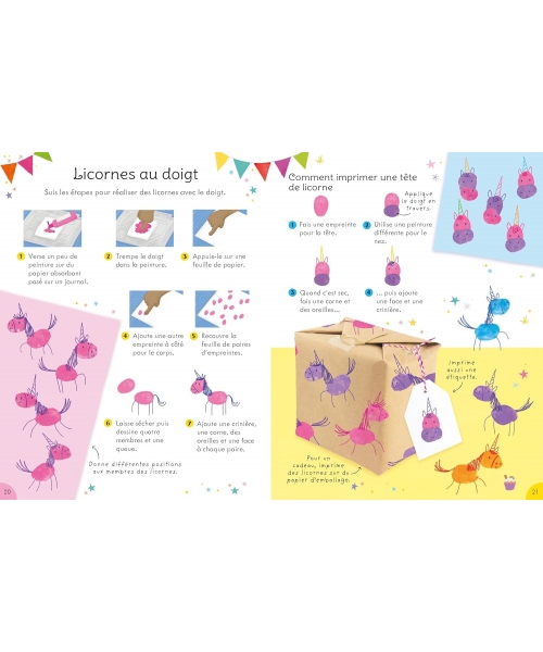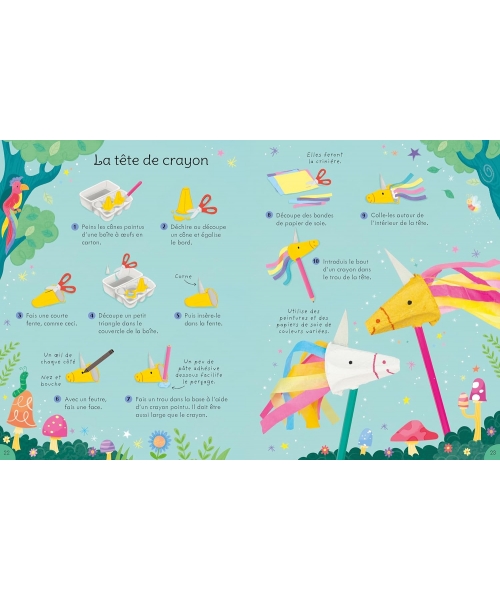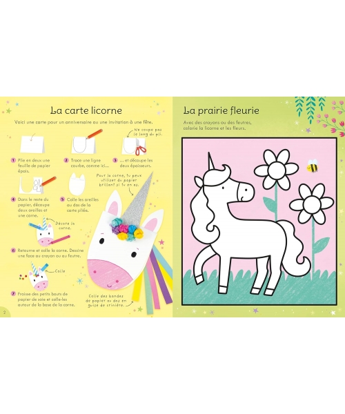 Des activités de loisirs créatifs, des pages de coloriage ou encore des modèles pour apprendre à dessiner pas à pas : ce livre est rempli d'activités amusantes et variées pour occuper les enfants, le tout sur le thème des licornes. Au fil des pages, les tout-petits pourront apprendre à créer une couronne fleurie, un château en carton, un masque de licorne et bien plus encore. Chaque activité utilise des objets du quotidien ou du matériel recyclé, et les instructions illustrées sont claires et détaillées, avec des conseils utiles et des photos des objets finis.