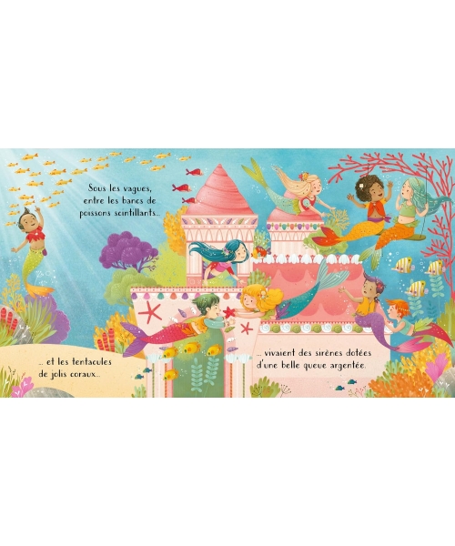 Un livre d'éveil cartonné avec une matière à toucher sur chaque page et des détails scintillants pour découvrir le monde merveilleux des sirènes.