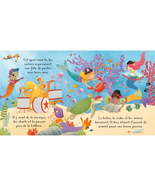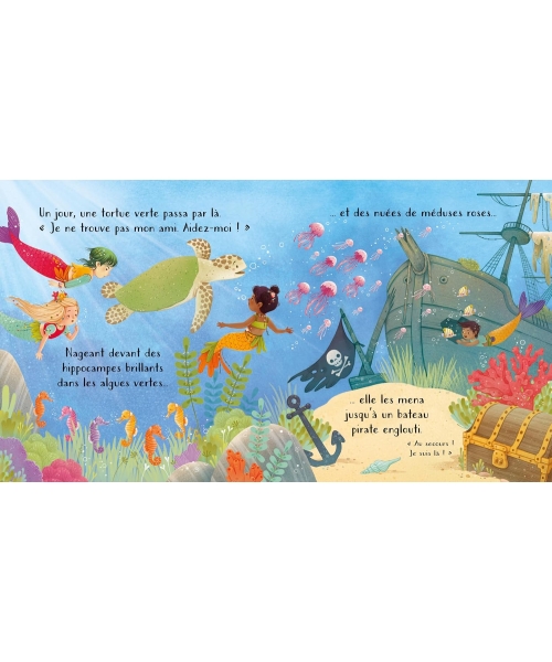 Plonge dans un monde sous-marin enchanté où des sirènes scintillantes aident une tortue à retrouver son ami. Une jolie histoire d'amitié accompagnée à chaque page d'une matière à toucher et de détails scintillants qui émerveilleront les tout petits.