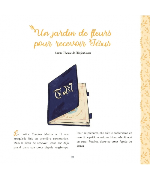 A travers 8 chapitres riches d'histoires, de jeux, de prières et d'enquêtes, le lecteur découvrira ce qu'il se passe à la messe, comment sont fabriquées les hosties, le mystère de la présence réelle, le trésor de la prière, mais également les premières communions de sainte Thérèse de Lisieux ou de saint Jean-Marie Vianney.