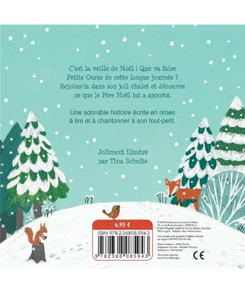 C'est la veille de Nol I Que va faire Petite Ourse de cette longue journe Rejoins-la dans son joli chalet et dcouvre ce que le Pre Nol lui a apport. Une adorable histoire crite en rimes lire et chantonner son tout-petit.